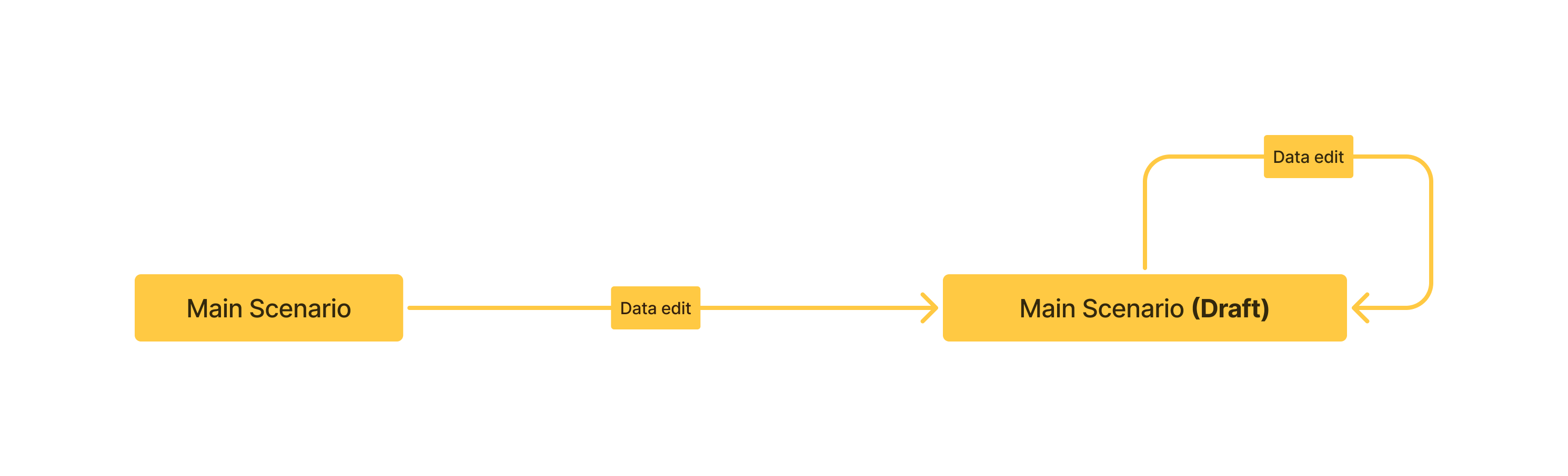 These specific actions—when performed in a main scenario—automatically move you into a draft scenario. When performed in a non-main scenario, the impact of these changes remains scoped to the scenario, until an Admin merges them into main.- Drivers: